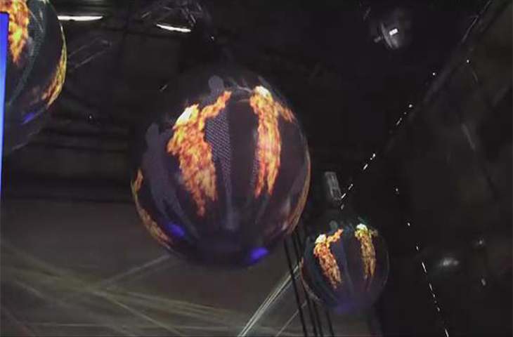 3、投影畫(huà)面投射到透明的投影幕,看起來(lái)就像是一個(gè)真實(shí)的球體在運(yùn)動(dòng)。