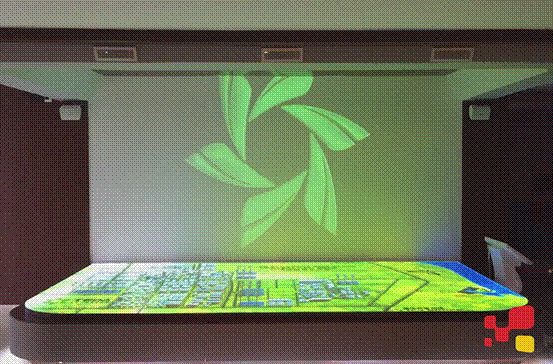 能展現城市中的建筑物、軌道交通、花草樹木、四季變化以及未來發展等信息,沙盤制作技術人員利用計算機中的沙盤制作軟件結合沙盤技術制作而成的內容,通過投影投射到屏幕上展現。